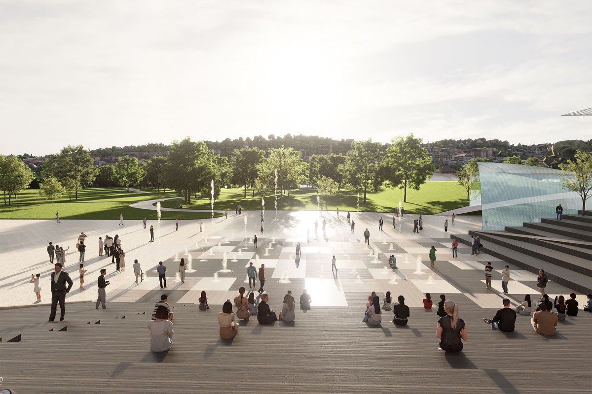 This project serves as a link between the city center and the new district, resembling more of an urban landscape than a traditional building.