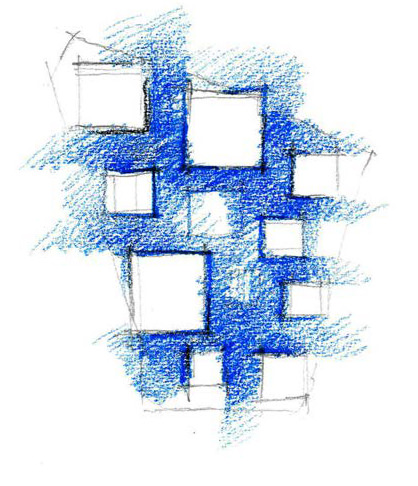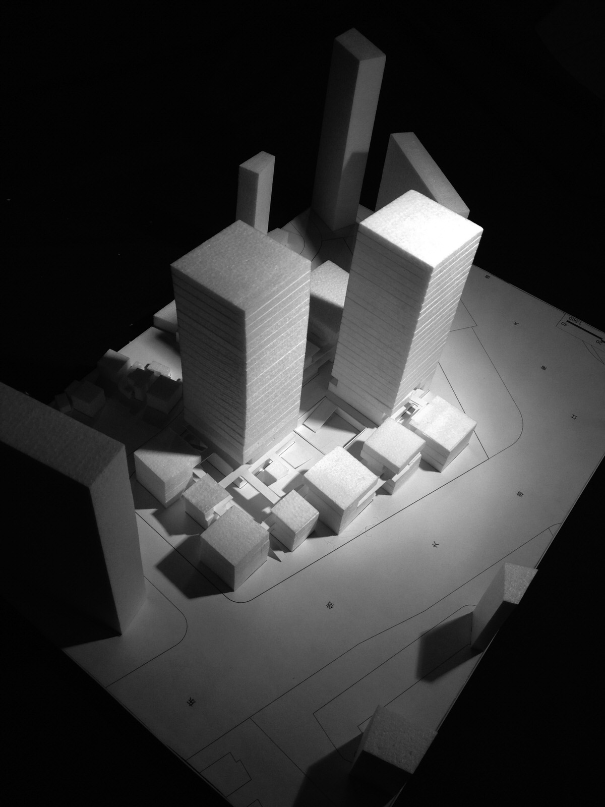 The site is located at the corner of two main roads. Because a metro line under construction runs beneath the site, the metro company planned to build a metro access nearby. Grasping this opportunity, investors intended to build here a commercial complex hosting shopping, recreation and office. This irregular site is an open space framed by surrounding streets and residential buildings. There are several bus stations around, so that residents here usually take the open area as a shortcut to reach their bus. The design not only encouraged this pedestrian shortcut, but also aimed at attracting metro passengers into the site. An open, rather than a closed commercial community was the ambition of architects.